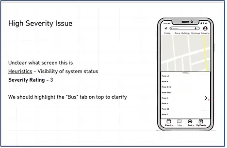 As a team, we reviewed our prototype and assigned severity ratings to each heuristic issue.